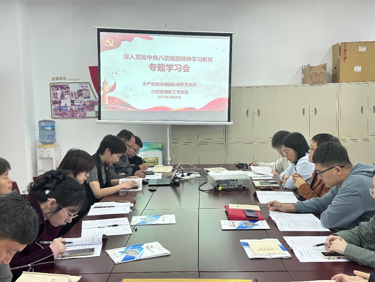 党委书记邵丽在活动中点评,本次联合党日活动主题鲜明,内容丰富,通过"理论学习+业务研讨"形式,不仅增进了支部成员间的了解,更有效地推进了党建与业务双融双促。她指出,本次活动中的两个基层支部都是“五星级”党支部,党建工作基础扎实,业务发展态势良好,要持续发挥各自特色优势,紧紧围绕学院中心工作,积极联动,汇聚合力,为推动学院高质量发展发挥“七个有力”的坚强战斗堡垒作用。她强调,开展深入贯彻中央八项规定精神学习教育是今年上半年党建工作重要内容,各支部要高度重视,认真组织,带领全体支部成员学得深、改得实、动得真。她鼓励,行政管理党支部要用身边师生的获得感检验学习教育效果,水产动物养殖团队教师党支部要注意把学习教育与服务国家战略和落实“登峰”任务结合起来,以作风建设新成效为事业发展注入新动力。