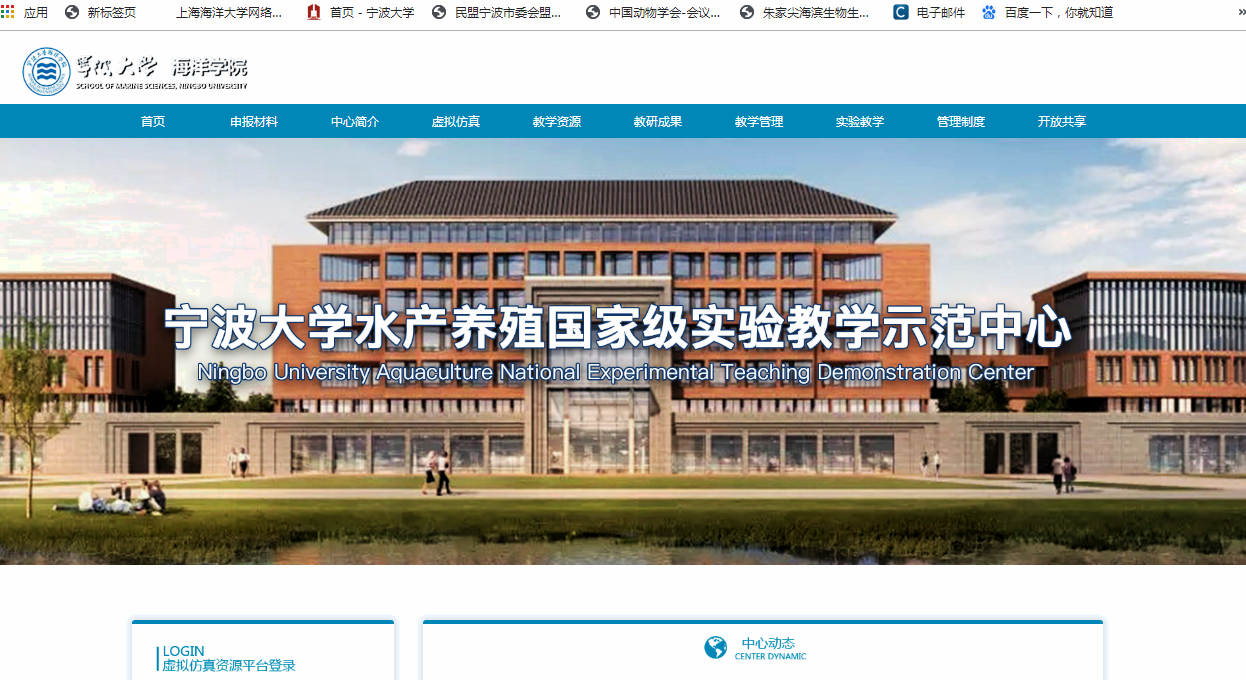 “水产养殖国家级实验教学示范中心”及虚拟仿真平台已经启用,示范中心门户网站模块包括:中心简介、申报材料、91视频公告