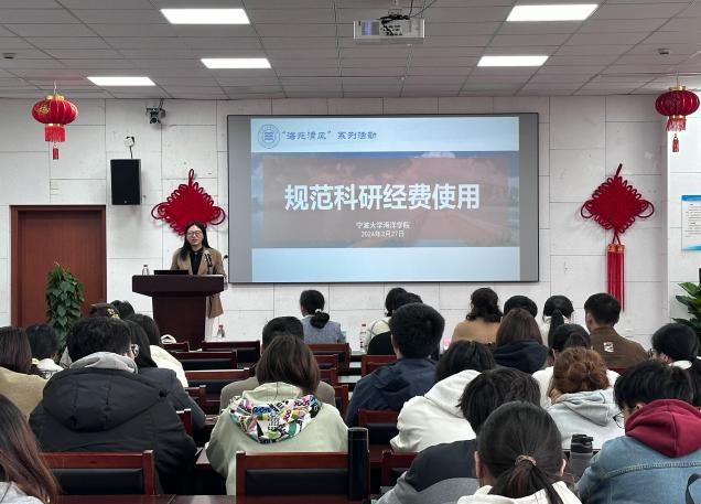 通过黄晓静副处长的政策解读,与会师生对科研经费的规范使用有了更深入的理解,大家表示将按照学校和上级有关要求,规范粘贴票据,合规合理使用科研经费,做一名诚实守信的宁大海洋人。