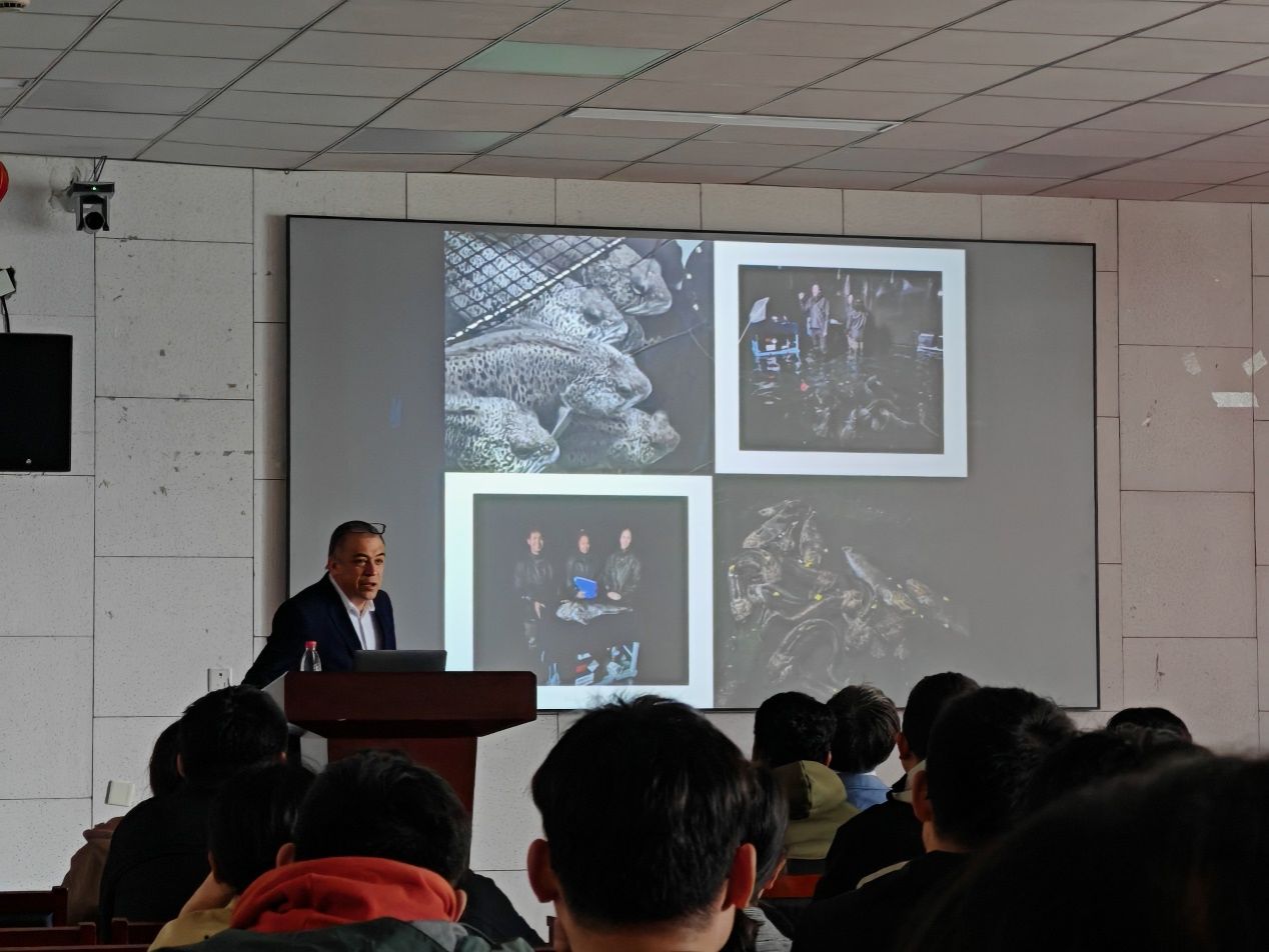 报告中,Jorge Galindo-Villegas教授简要介绍诺德大学的国际合作项目以及学术交流活动,随后,比较了全球各国水产养殖产业发展现状,简述产业前景并剖析了面临的诸多问题,以发展新兴鱼类产业为切入点,介绍花狼鱼的生活习性和性成熟发育周期,深入讲解他在花狼鱼生殖细胞保存技术开发、繁殖周期探索以及相关分子调控机制的研究历程。他还鼓励现场师生关注Aquaculture期刊并参与论文审稿工作,积极参加国际鱼类和贝类免疫学会的学术交流活动,并耐心回答了师生们实验设计以及论文投稿过程中遇到的问题。本次学术交流由91视频