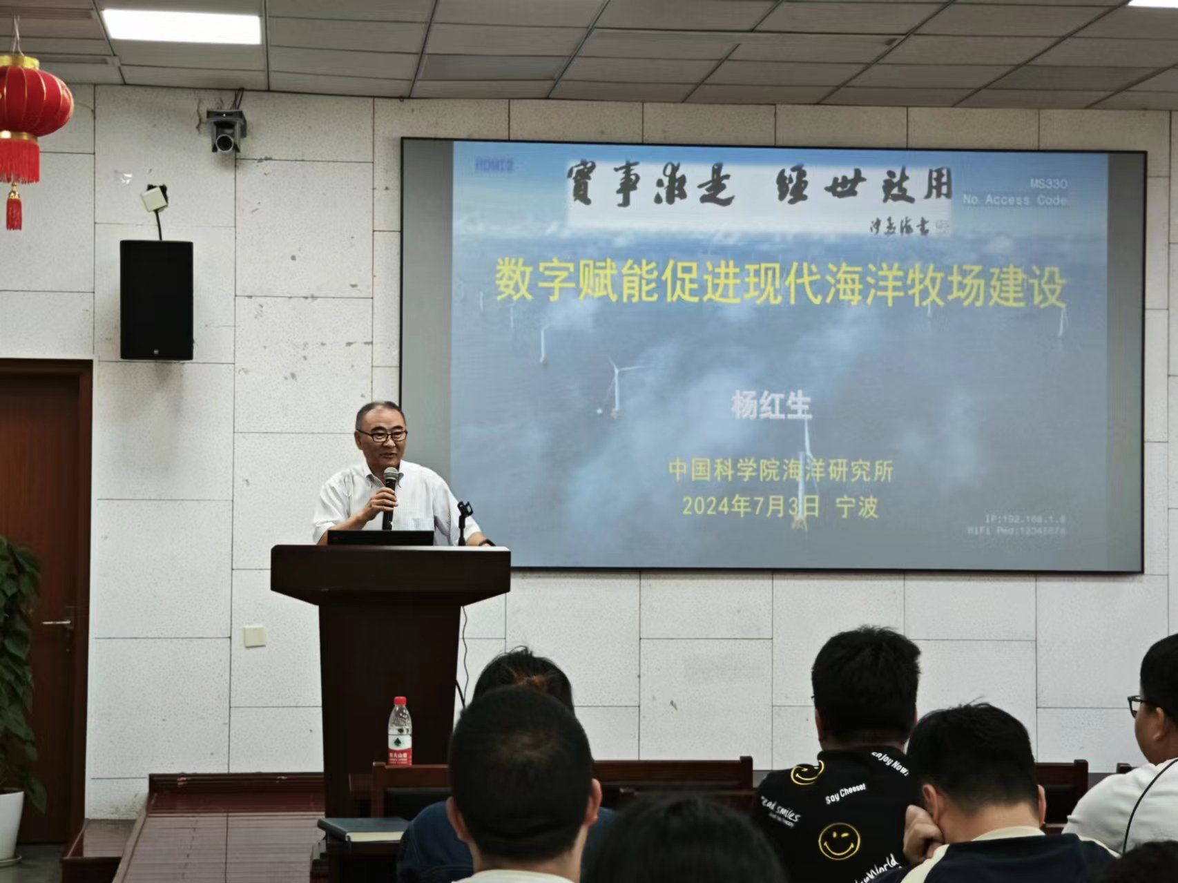 师生与杨红生研究员进行了深入的交流和讨论,大家对国家海洋牧场现代化建设有了更深层次的了解,对数字赋能助力现代海洋牧场建设打开了新的视野。