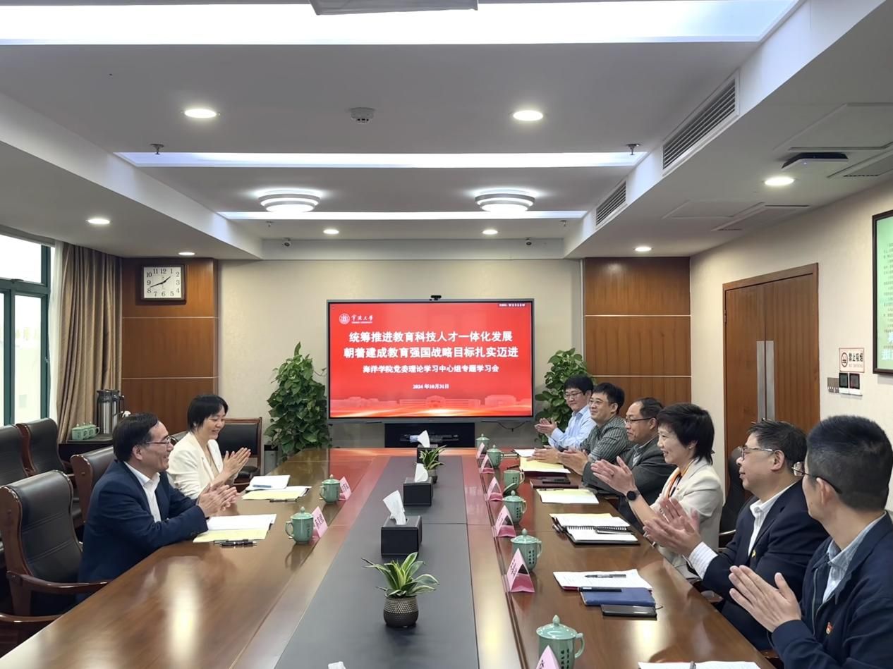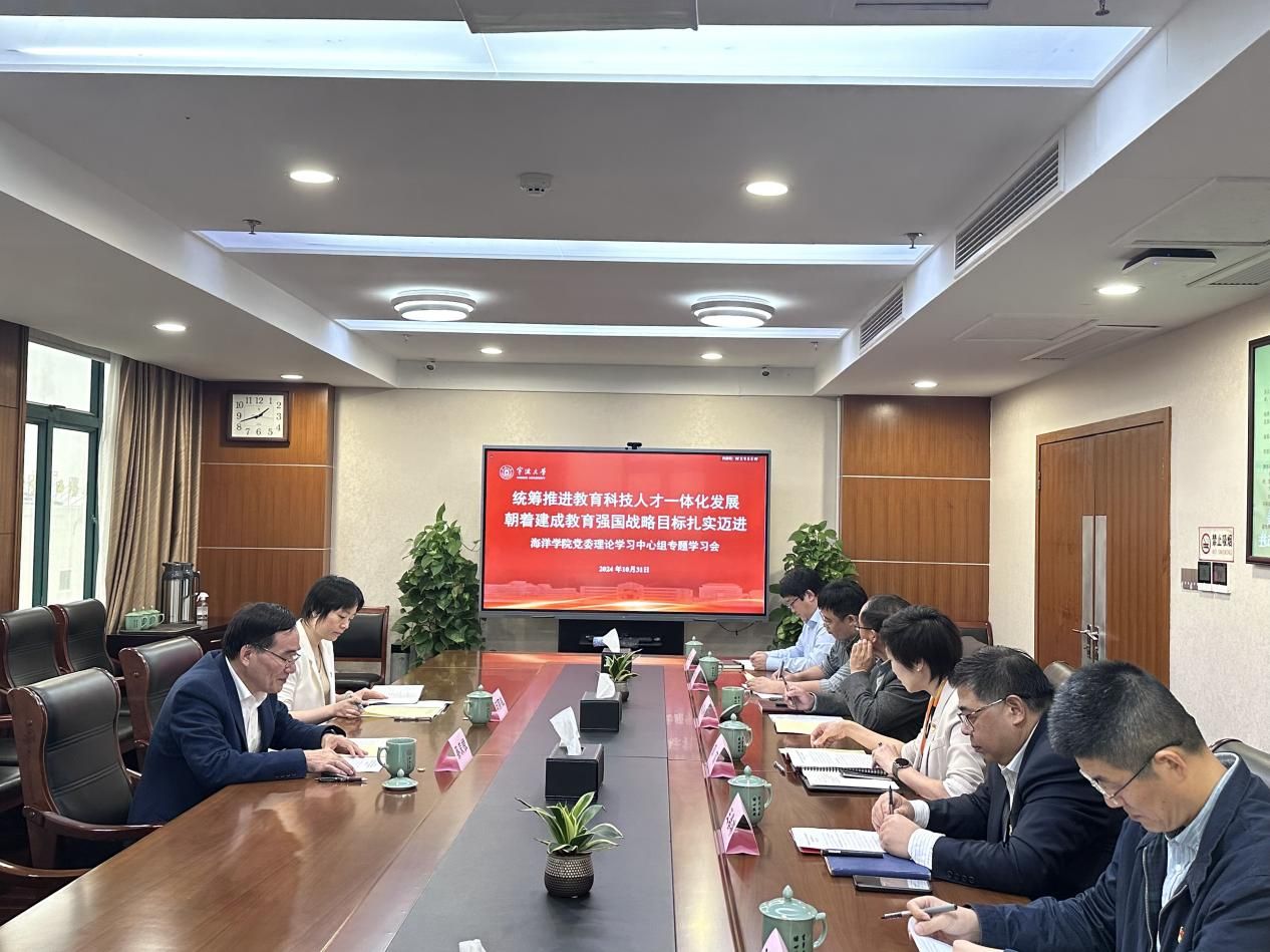 党委理论学习中心组组织召开“统筹推进教育科技人才一体化发展,朝着建成教育强国战略目标扎实迈进”专题学习会,校长蔡荣根和学校二级党组织理论学习中心组巡听旁听第二小组成员到会指导,学院党委理论学习中心组成员参加了本次会议,会议由学院党委书记邵丽主持。