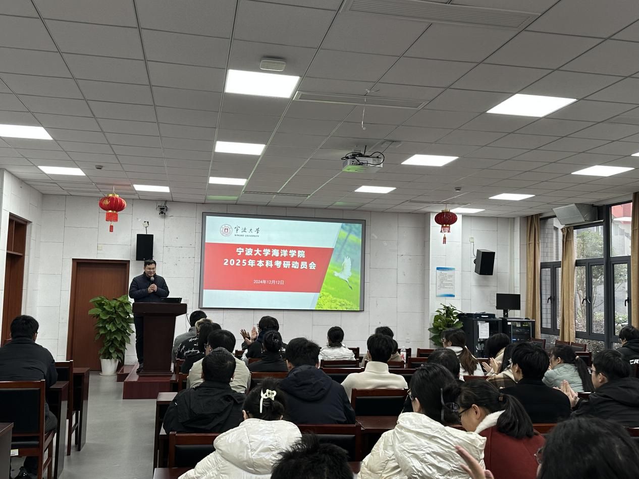 为帮助考研学子缓解备考压力,坚定考研信心,鼓舞考研士气,海洋学院于12月12日下午在竺银康楼107报告厅举办2025届考研冲刺动员会。学院副院长陈相瑞、党委副书记张乐、辅导员、2025届考研学生参加活动,大会由学工办主任王腾飞主持。