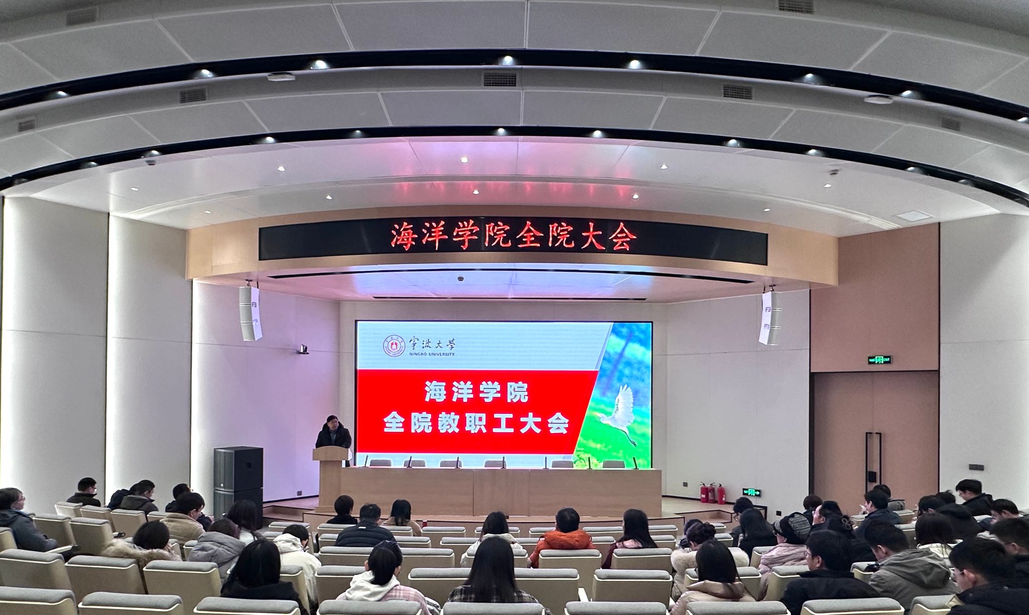 2025年新学期全院教职工大会在梅山校区中试基地一楼报告厅召开,学院党委书记邵丽主持会议,全体教职工出席。