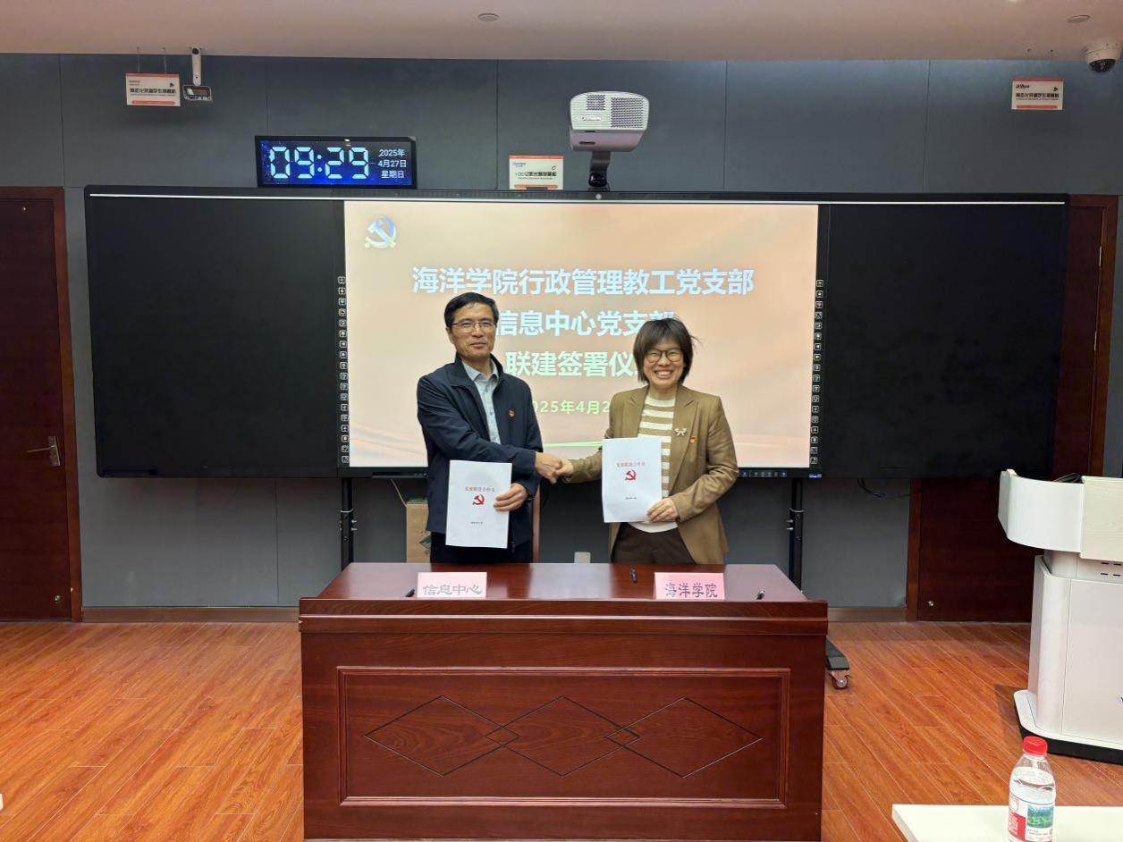 行政管理教工党支部书记包红燕分别介绍各自支部建设情况、党员队伍及近年取得的荣誉成果,并代表双方签署联建协议。
