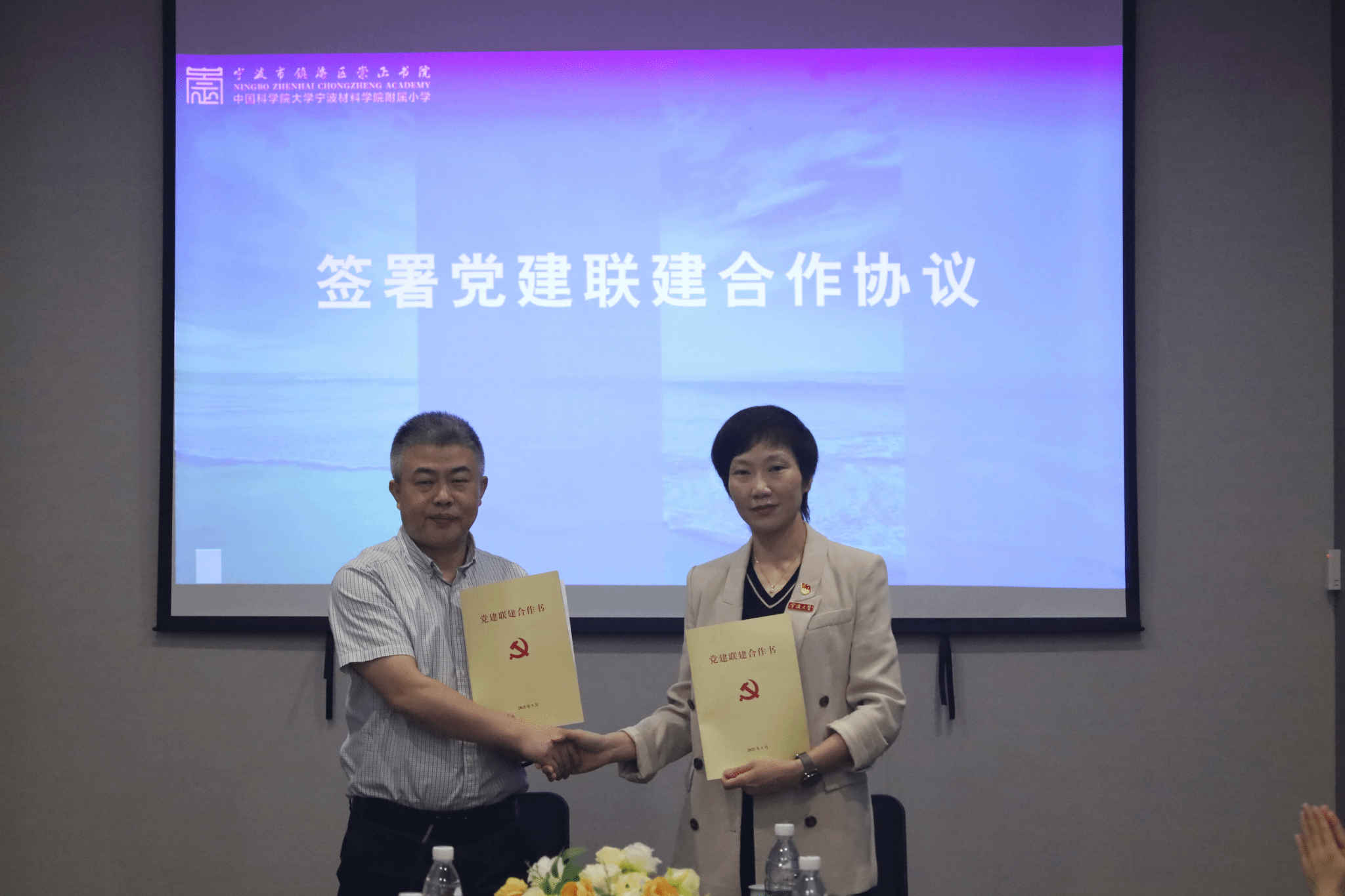 分别与崇正书院、精英小学、澥浦中心学校签订党建联建合作书,并赠送海洋科普书籍,正式启动“组织共建、资源共享、人才共育”合作机制。刘训华与邵丽共同为三所学校授予“海洋教育实验学校”。