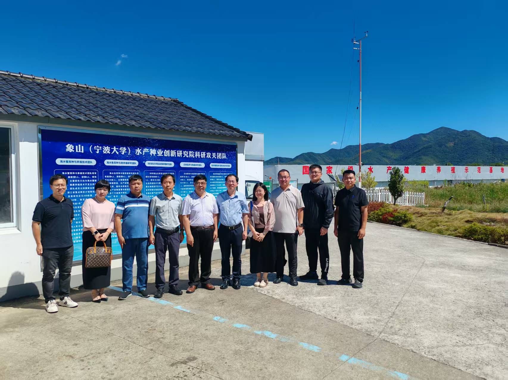 )种业研究院院长王春琳、副院长陈挺、基地副主任胡佳宝,学院党委委员王亚军、蟹类团队刘磊接待了来自山东东营市海洋发展和渔业局薄纯全局长一行的参会代表,参观走访了水产种业创新研究院、象山港湾水产苗种有限公司,调研大黄鱼、青蟹、银鲳、小黄鱼等水产种业的发展情况,实地查看了尾水整治设施,并就青蟹、银鲳的产业化合作进行了深入的交流。