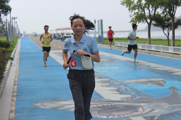 上午10时,参与活动的教职工齐聚海洋南楼一楼大厅,现场气氛热烈。活动伊始,工作人员统一分发号码牌,随后学院党委书记邵丽发表动员讲话。她指出高校教师作为立德树人的第一线,既要用知识为学生“赋能”,又要用健康的身心为教育事业“续航”;她强调就如跑道上的坚持与接力,教育工作者在讲台、实验室的坚守,都是为国家培养人才、为民族积蓄力量;她鼓励大家在奔跑中感受运动的快乐,在并肩前行中凝聚团队的力量,以更加强健的身心、更加昂扬的姿态,扎根教育沃土,为培养担当民族复兴大任的时代新人贡献力量,以实际行动向祖国献礼!全体人员在合影留念后,认真听取了活动注意事项,随后统一乘车前往梅山湾比赛地点。
