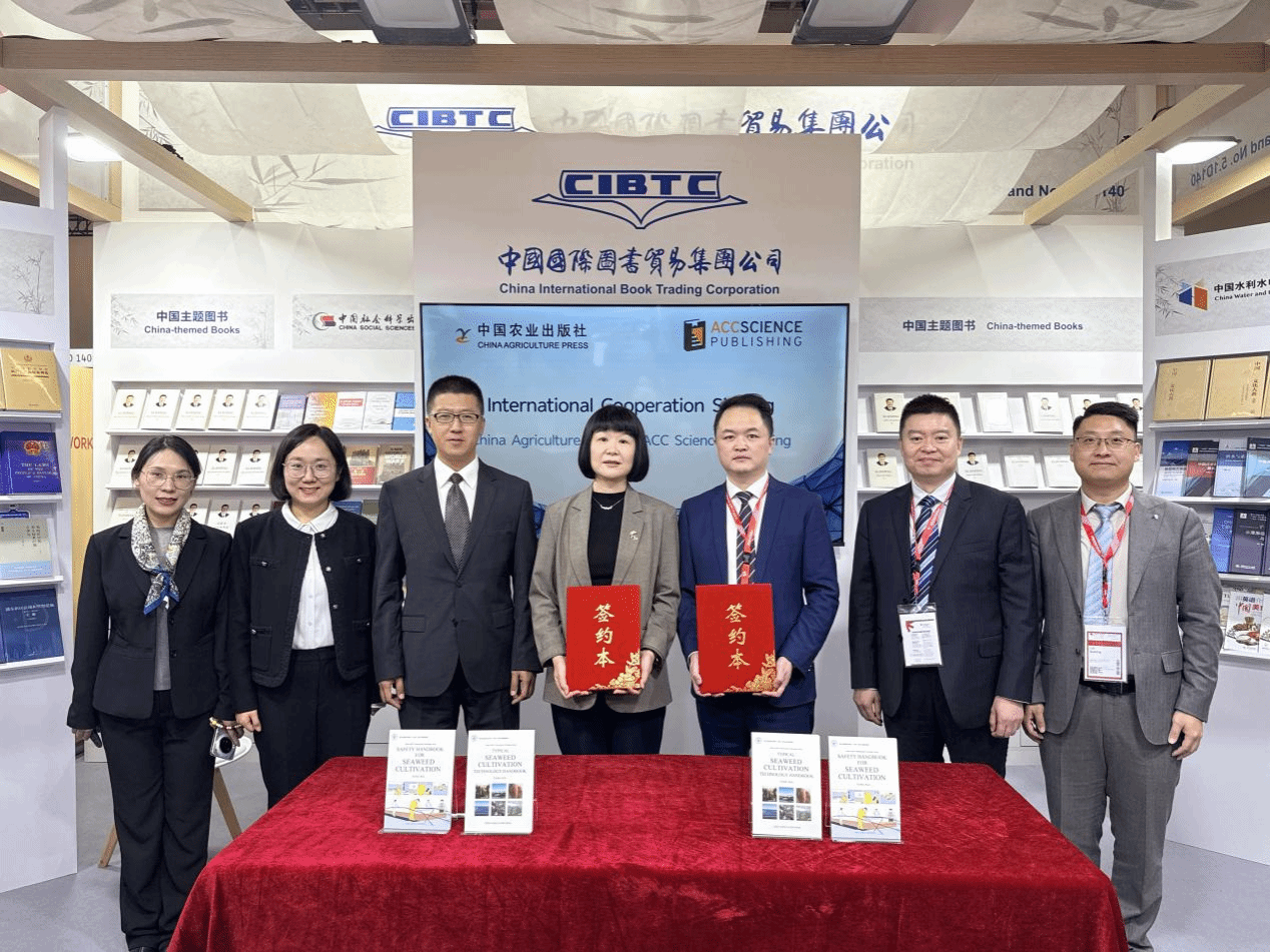 杨锐研究员主编的《Seaweed Cultivation and Safe Production》系列教材(《Typical Seaweed Cultivation Technology Handbook》和《Safety Handbook for Seaweed Cultivation》)进行推广,并与新加坡ACC Science Publishing(ASP出版社)签署英文版、马来西亚文版合作协议,为中外农业科技合作与交流注入新动能。