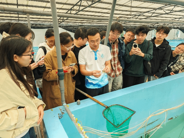 )水产种业创新研究院试验基地顺利开展。来自该专业的40余名研究生在课程主讲教师郭海朋的带领下,利用周末两天时间参与对虾绿色养殖全流程实践,近距离聆听企业专家的现场授课,在塘边课堂中锤炼专业技能、深化产业认知。