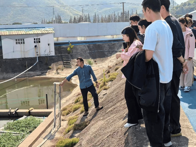 本次校外实践教学邀请象山蓝尚科技有限公司负责人与海大集团资深养殖工程师亲临塘边授课,两位深耕对虾养殖产业多年的专家结合企业技术研发与市场应用经验,围绕对虾绿色养殖的产业现状、技术痛点、发展趋势等内容展开分享。象山蓝尚科技负责人以 “基于下沉式温控大棚南美白对虾可控化高效养殖技术研究与示范” 为主题,通过案例分析详解大棚设施改造、精准投喂、水质调控等技术如何降低养殖风险、提升养殖效益;海大集团养殖工程师则聚焦一线养殖难题,从苗种选择、病害防控、饲料配比等关键环节入手,传授实战经验与应急处理技巧,让学生们直观感受到产业对专业技术的实际需求。郭海朋老师带领学生深入养殖现场,开展从原水消毒、苗种投放、养殖管理到尾水处理的全流程实践教学。学生现场了解不同养殖模式养殖情况,通过亲手检测水质、观察对虾生长状态,将理论知识与产业实践紧密结合。此次校外实践中,学生与专家互动交流热情高涨,纷纷表示:“专家分享的案例都是产业一线正在发生的实际问题,塘边授课实践让抽象的理论变得可感可知,不仅掌握了对虾绿色养殖的核心技术流程,更清晰了专业知识在产业升级中的应用价值,对未来的职业发展和研究方向有了更明确的规划。”