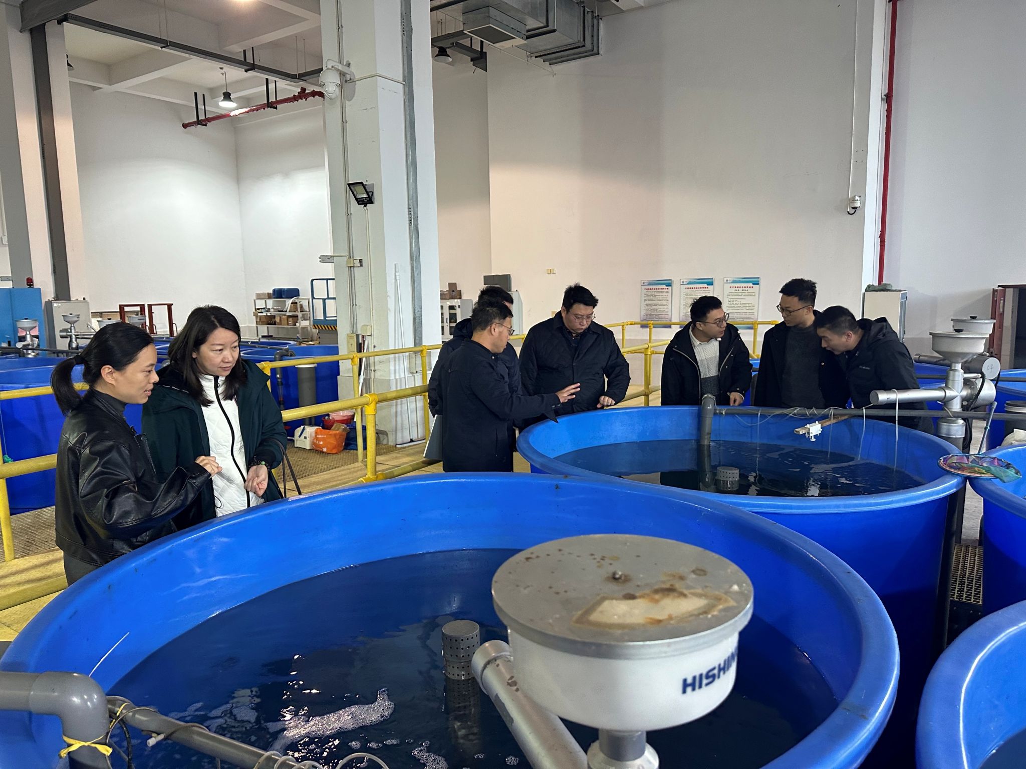 院史馆与中试基地。在院史馆,大家通过图文展板、实物陈列、多媒体演示等形式,深入了解学院发展历程与科研成就;在中试基地,科研人员详细介绍了鱼、虾和蟹等水产品育种实验设备,直观展示了学院将科研技术转化为实际生产力的能力与基础。