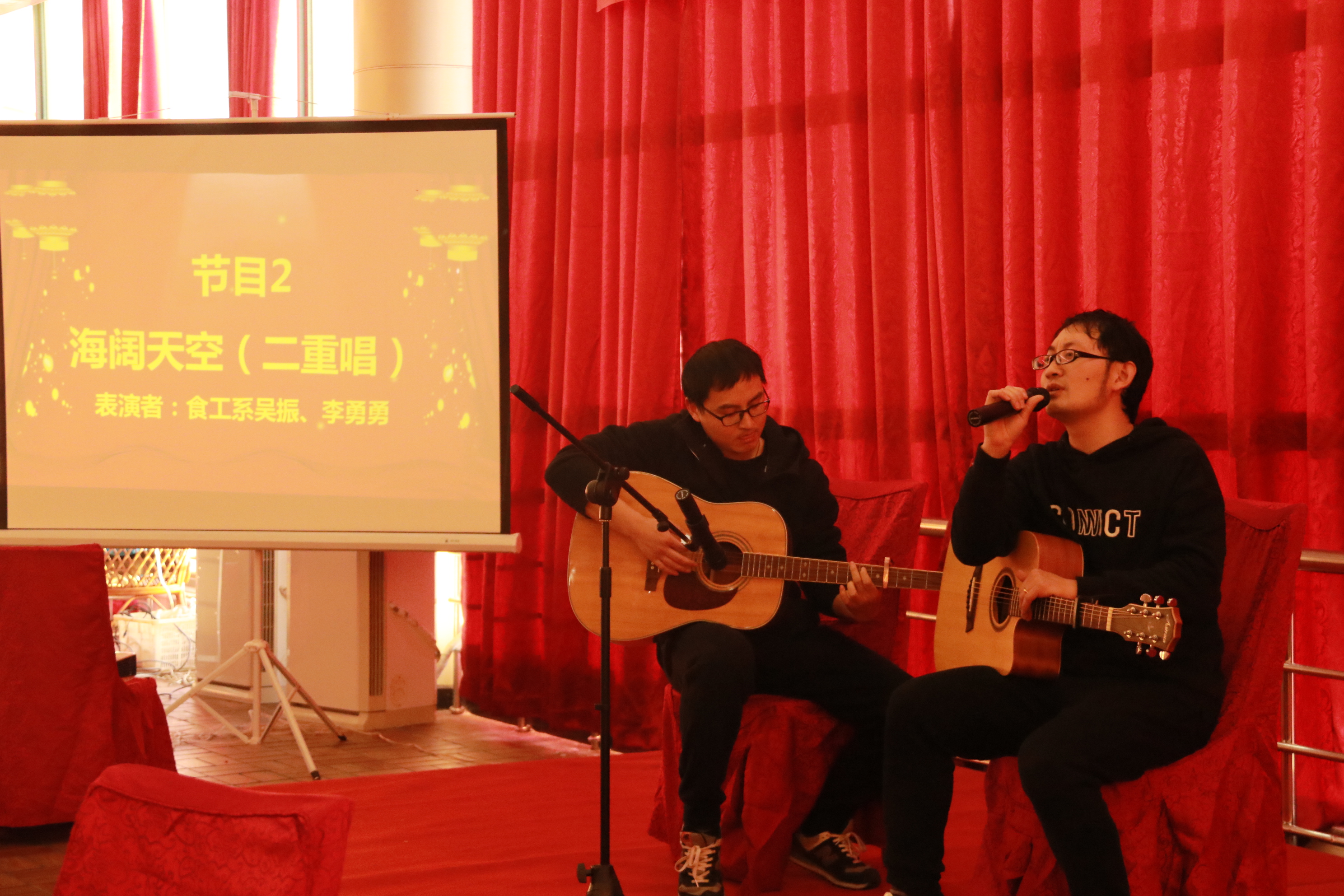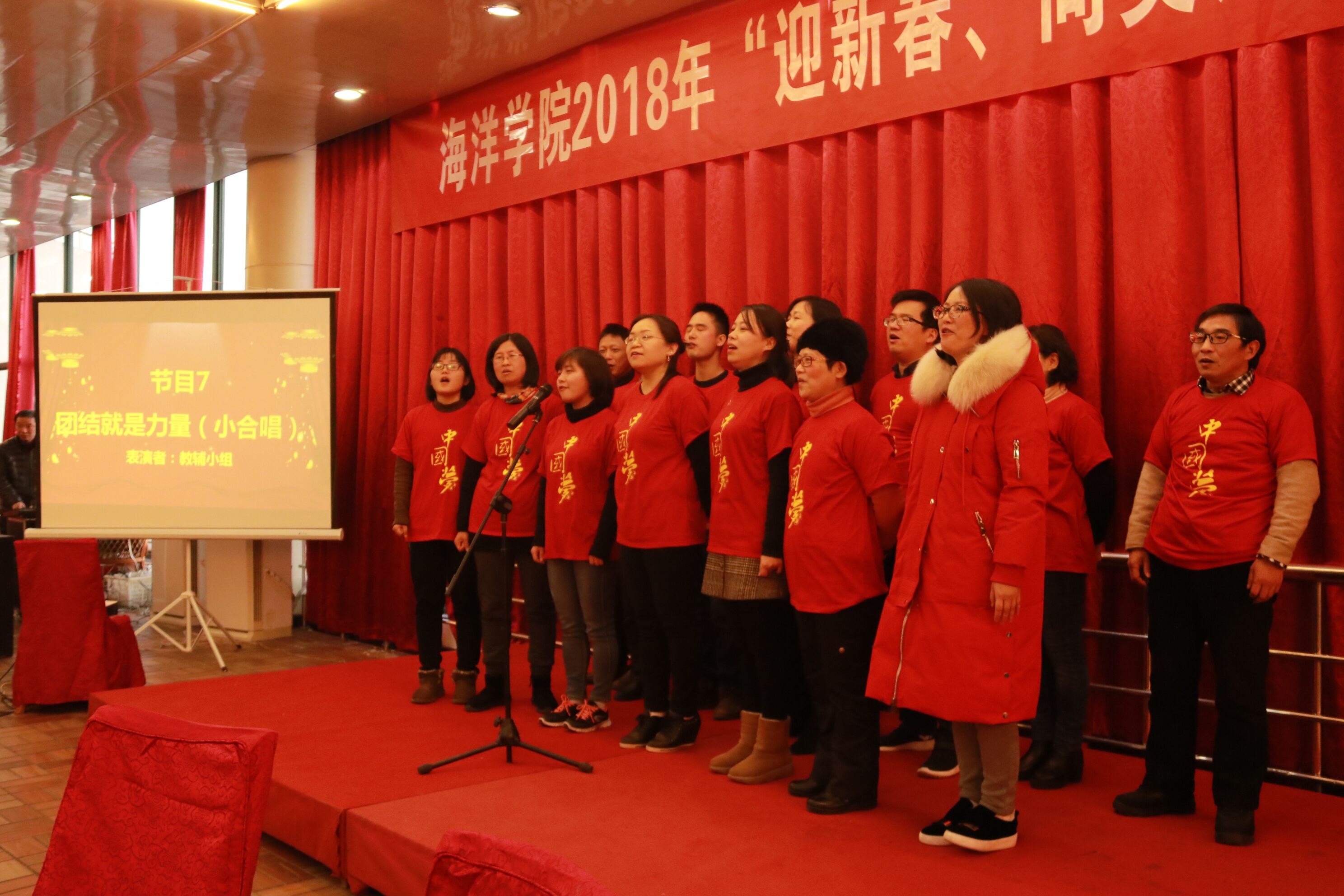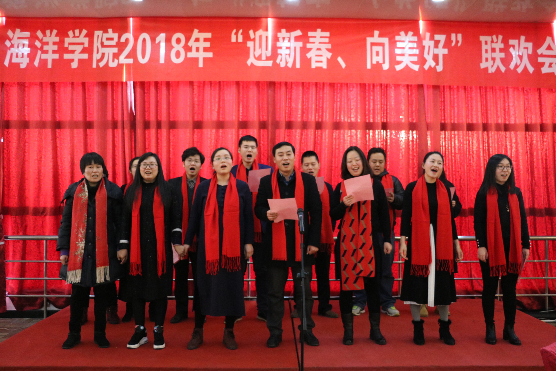 教职工们欢聚一堂,在教工食堂开展以“加强团结、促进交流、凝心聚力、有所作为”为主题的2018年“迎新春、向美好”联欢会,联欢会由学院分工会主办。