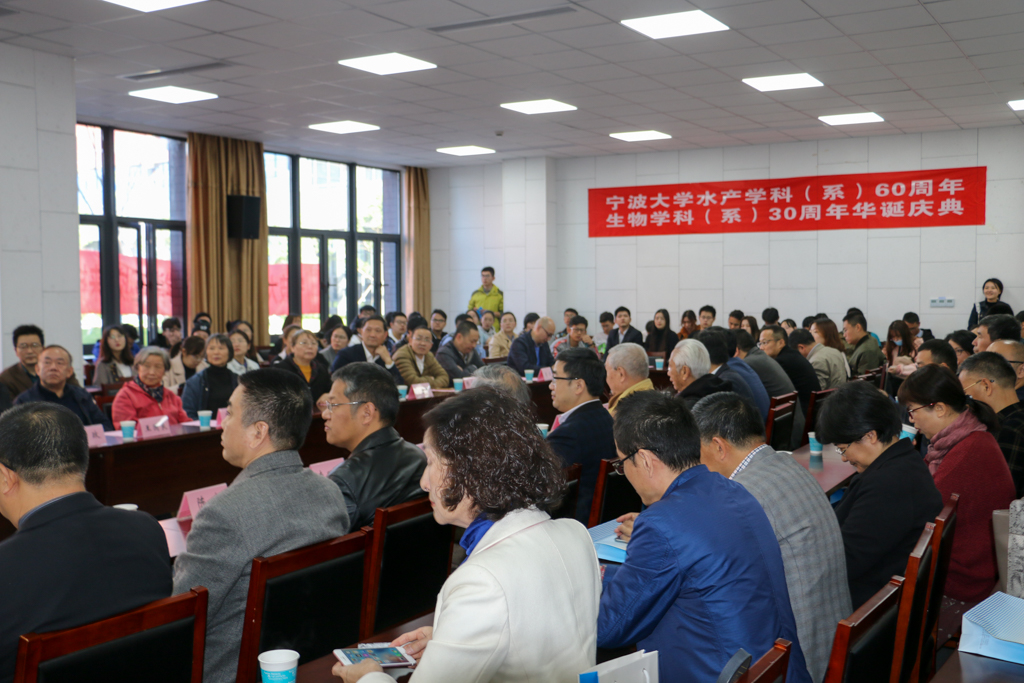 梅山校区竺银康楼107举行水产学科(系)60周年、生物学科(系)30周年华诞庆典,学科老教师代表、校友代表和师生代表共120余人参与庆典,91视频