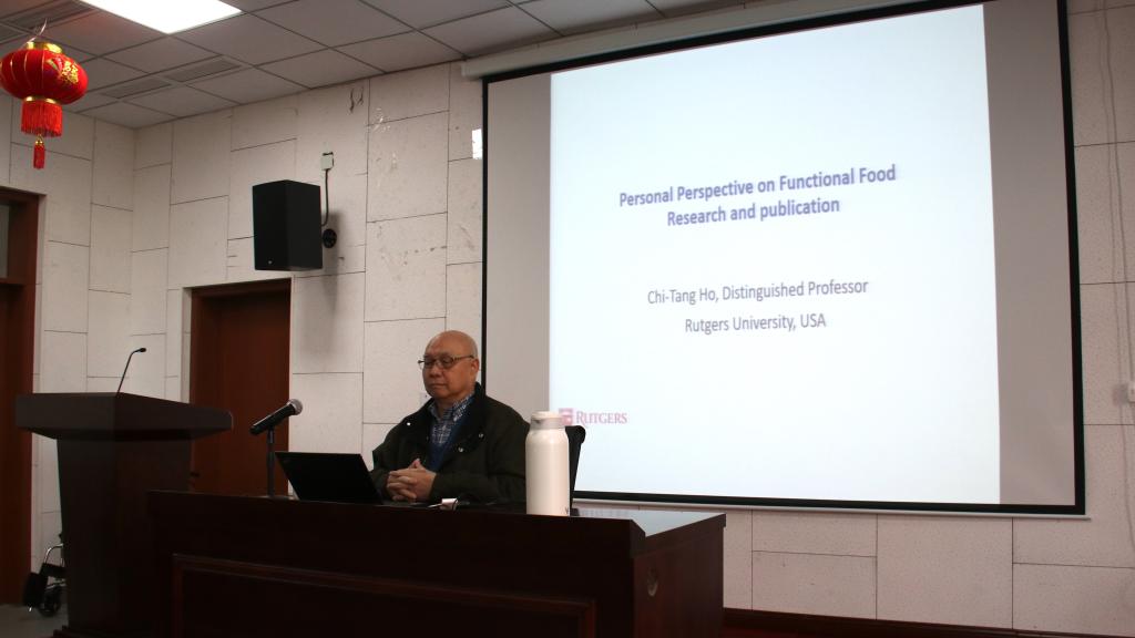 28日上午,Chi-Tang Ho教授举办了题目为“ Personal Perspective on Function Food Research and Publication”的报告会,吸引了梅山校区100余位师生前来聆听。报告会上Chi-Tang Ho教授对茶功能性成分的研究历程及对人体健康的影响等内容进行了深入的介绍,同时结合自己在科研领域几十年的经历和发表文章的经验就论文撰写及期刊投稿工作提出了宝贵的意见和建议,使在场的师生收益良多。