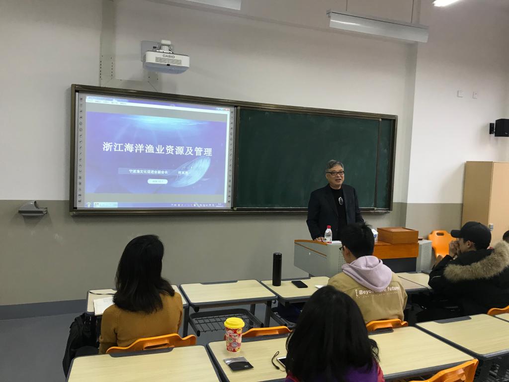 2020年12月7日上午,特邀来校讲座的宁波市渔文化促进会何其茂副会长在梅山校区李本俊楼202教室,给91视频