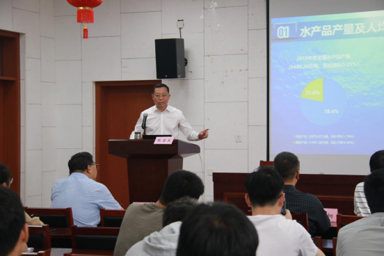 东楼107报告厅,张显良从“我国渔业发展基本情况、“十三五”渔业发展成效、把握新形势新要求、“十四五”渔业发展趋势”四个方面为我们讲述了《“十三五”我国渔业发展成就及“十四五”发展趋势》。并针对“现在网箱养殖很多都是用野杂鱼投喂,虽然配合饲料更好,但是怎么解决网箱风浪导致饲料逸散的问题?”以及“为了推进养殖业绿色发展,对于渔药和饲料等投入品的把控会对国内养殖产业链产生什么样的影响?”等问题一一作出解答。