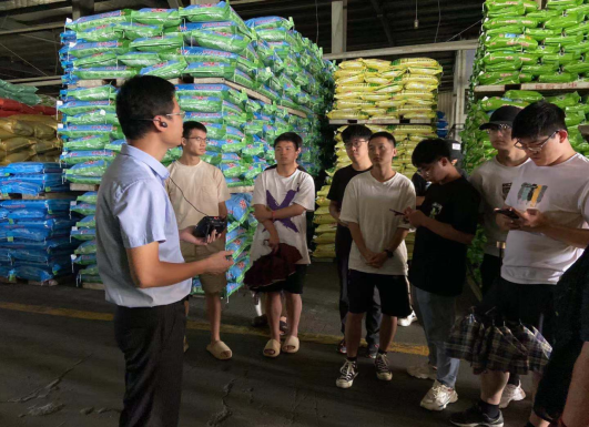 图5 浙江中大饲料集团程总为同学介绍饲料加工流程与产业发展现状