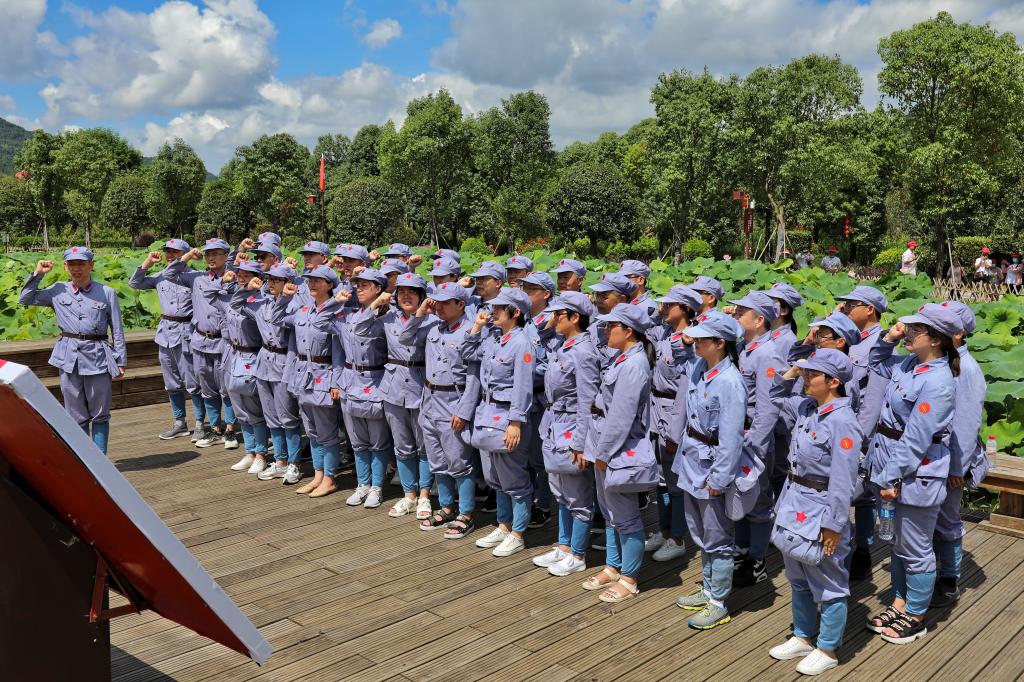13日上午,在红色革命圣地上杭县古田镇,党员们怀着无比崇敬的心情踏寻先辈足迹,感悟革命情怀,参观了古田会议旧址、古田会议纪念馆,瞻仰了毛主席纪念园。 “古田会议永放光芒”八个红色大字矗立在山脚下,在阳光的映衬下,显得分外鲜艳夺目。“古田是我们党确立思想建党、政治建军原则的地方,是我军政治工作奠基的地方,是新型人民军队定型的地方。”在庆祝建党一百周年之际,回眸来路,古田会议精神穿越历史时空、历久弥新,始终闪耀着真理的光芒。