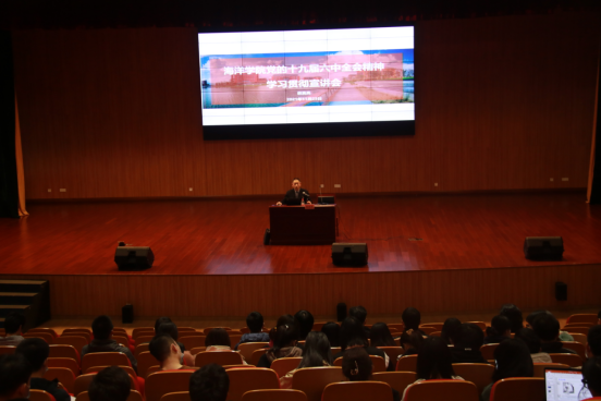 在梅山校区大会堂召开党的十九届六中全会精神学习贯彻宣讲会。本次宣讲是继组织各支部集中收看和学习十九届六中全会精神直播,学院召开理论学习中心组扩大会议专题学习党的十九届六中全会精神后,为进一步落实宣讲任务,确保宣讲实效,由学院党委书记蔡真亮面向全体师生作的宣讲,主题为《总结百年恢宏历史,凝聚复兴磅礴力量》。