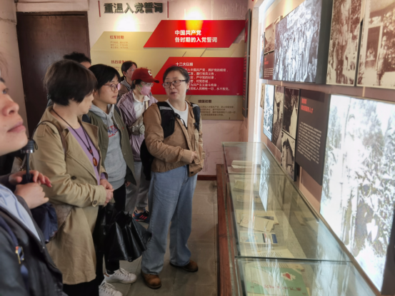 大家首先来到堇山湖畔的沙村,参观宁波第一农村党支部陈列馆,沙村很“红”,这里不仅蕴含着“沙氏五杰”的传奇故事,还是中共沙村支部的诞生地,沙村农会也是宁波地区成立最早的农会之一。在沙村宗祠的院落间,党员教师耳畔仿佛响起了农民运动时期党员纷至沓来的脚步声、农会会员勇于和恶势力斗争的呐喊声。漫步在坐落于青山绿水间的沙村,党员教师沉醉于红色岁月里光荣的革命斗争历史。
