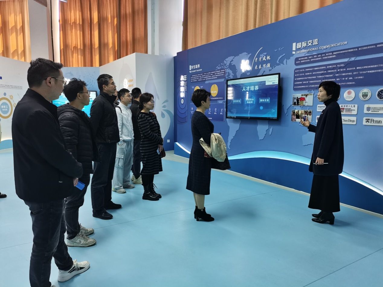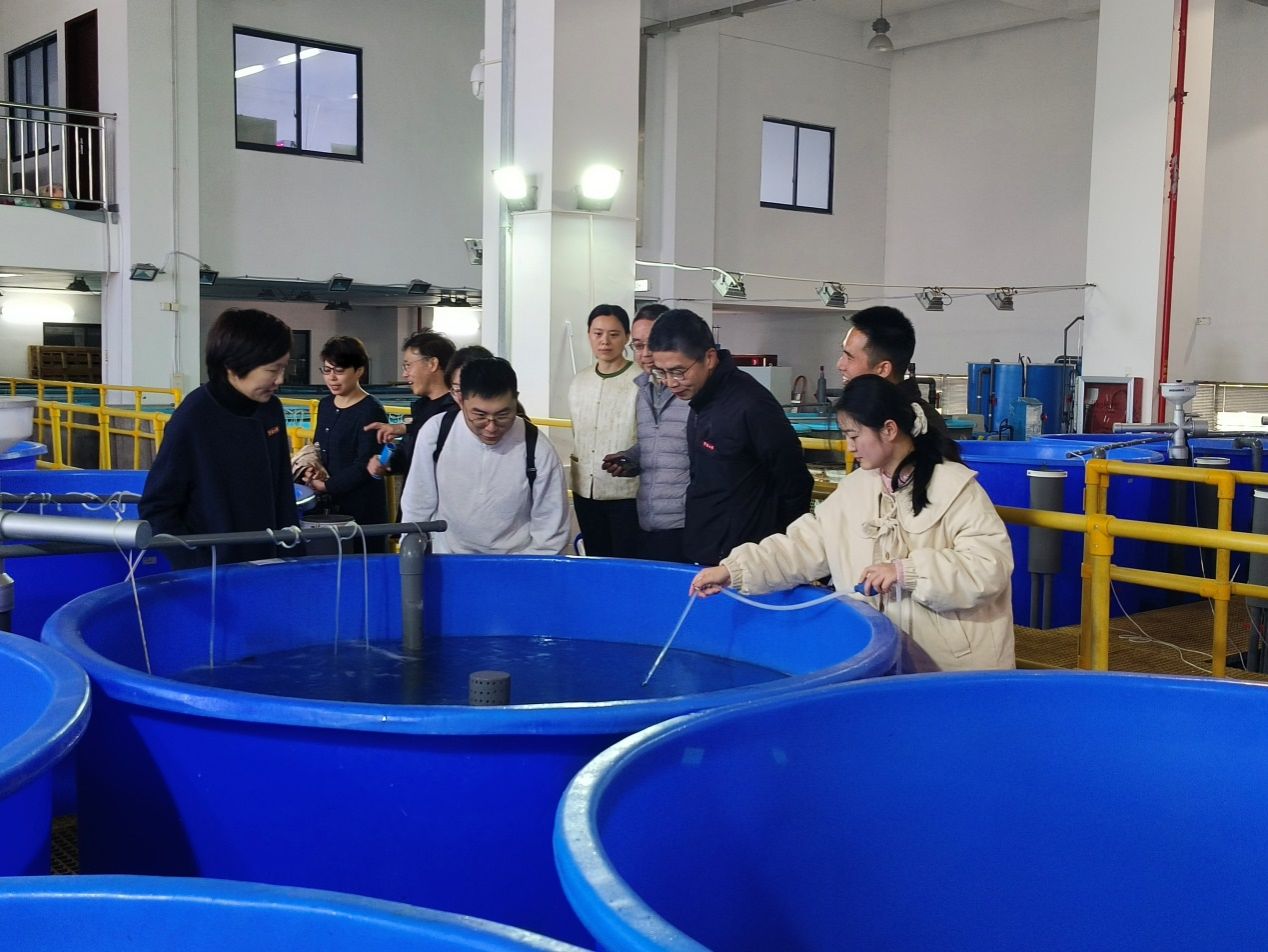 院史馆、标本馆及中试基地,详细了解了学院在学科发展、人才培养、地方服务以及农民培训等方面取得的显著成果。其中,学院的“单蟹公寓”和“循环水养殖系统”等智慧养殖体系引起了考察组的浓厚兴趣,考察组对这些创新成果给予了高度赞赏,认为它们为农民培训工作提供了坚实的专业支撑和现实基础。
