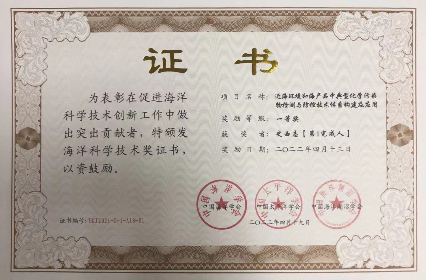 2022海洋科学技术奖一等奖-史西志个人